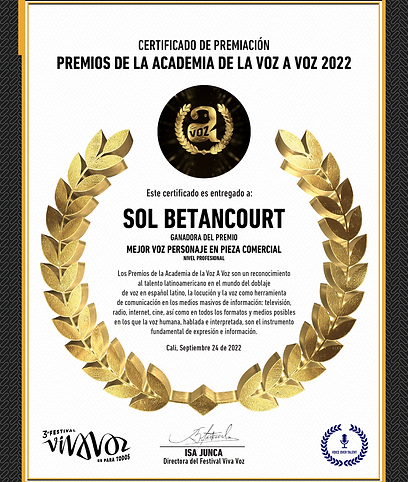Another of my achievements was producing and directing 4 seasons of 1-minute short stories, the first podcast for children with which many learn everyday issues and social value, I also organized the first largest vocal meeting in Ecuador with the best references in the world of the voice of Latin America, Voices in the Middle of the World in its first edition 2022, in addition to winning the international award for Best Character Voice in a commercial piece in the same year at the Voz A Voz Academy Awards in Colombia, without a doubt, these are just my first achievements within everything that I have proposed as an integral voice artist.